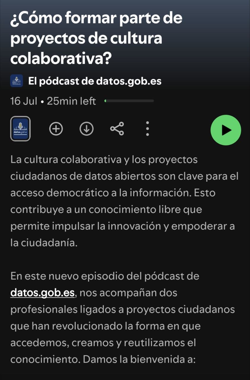 El 16 de julio tuve la oportunidad de unirme al pódcast de datos.gob.es, centrado en la cultura libre y colaborativa. En esta edición, discutí junto a Florencia Claes acerca de dos iniciativas que guardan una estrecha relación: Wikimedia y OpenStreetMap.